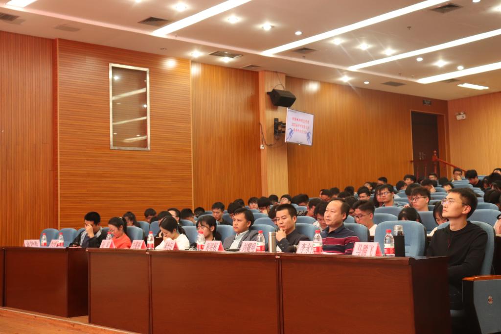 会议开始,研究生院招生科科长刘耀明为大会致辞。刘耀明老师对当前严峻的考研形势、考研目的、国家相应政策及我校概况及优惠政策等方面进行了解读。随后,备考辅导专家马腾飞老师以考研英语为例,对考研进行了分析,解答了考研该考什么、如何准备、为什么要考研等问题,为同学们理清了思路,明确了方向。会议最后,周明权副书记对会议进行总结讲话,他从为什么考研、考研为了谁以及如何准备考研三个问题展开作了深入浅出的分析,并鼓励全体2018级同学要树立目标,立志考研,提高标准,积极备战,迎接更美好的未来。