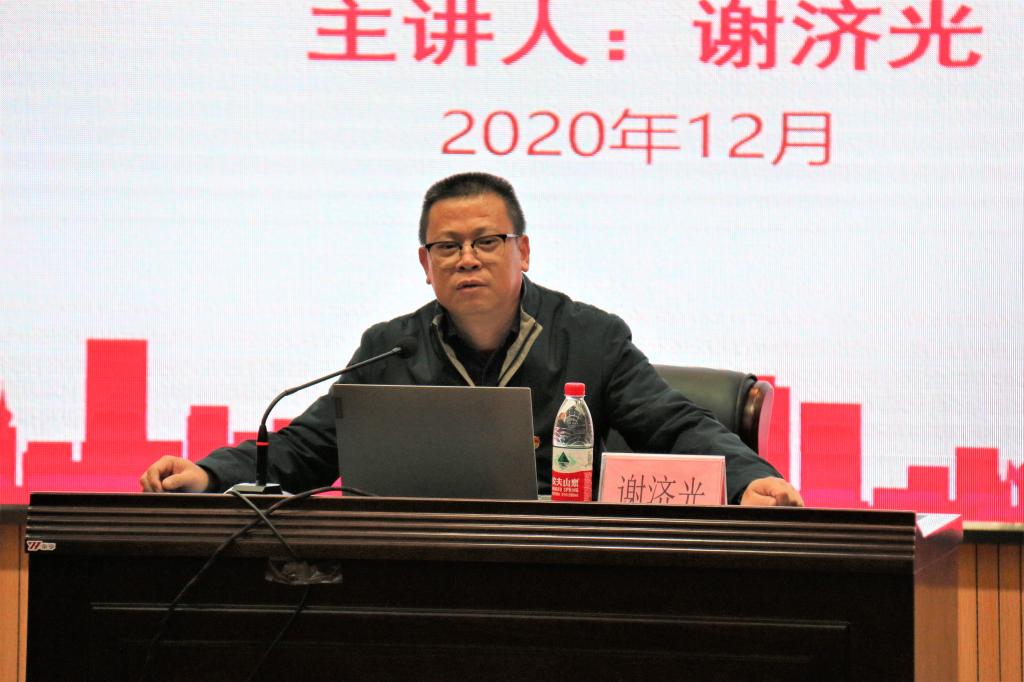 会场稍作休息后,学院党委书记谢济光进行本期培训班第一讲讲座。他主要以“如何做好新形势下高校意识形态工作”为题,围绕“习近平总书记关于高校意识形态工作重要论述”、“高校意识形态工作中面临的形势与存在的问题”、“加强高校意识形态工作的对策方法和艺术技巧”这三个方面给同学们展开讲解。他平易近人的口吻、幽默风趣的谈吐让同学们对本次培训有了更深刻的理解和感悟。