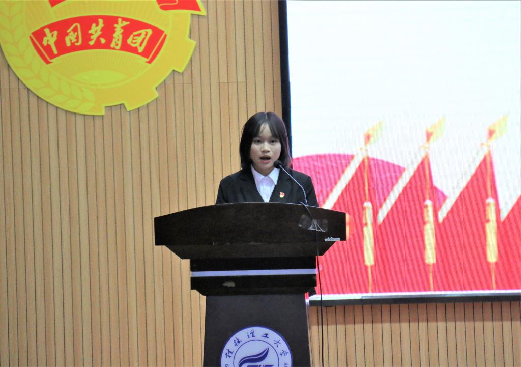 会议伊始,全体起立,奏唱中华人民共和国国歌。随后,学院团委兼职副书记兼18级辅导员梁璇宣读《关于举办学院第一期“青年马克思主义者培养工程”大学生骨干培训班的通知》。接着,第一期青马班学员代表-学生团委副书记韦运垌上台发言,她呼吁了大家要努力成为一名优秀的青年马克思主义者,并代表全体学员郑重承诺。之后,学院学工组副组长于文霖作本次培训班开班讲话,他主要说明了开设青马培训班的原因和目的,并表达了对同学们的殷切希望。最后,全体起立,奏唱《光荣啊,中国共青团!》,本次开班典礼随之结束。