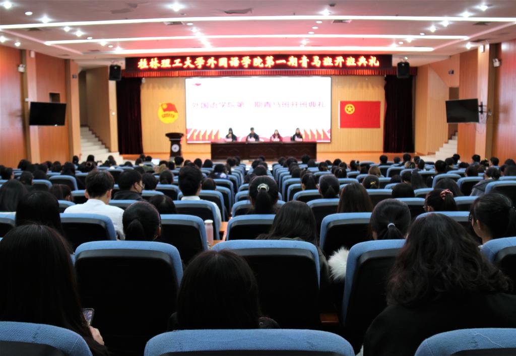 12月8日下午4点45分,外国语学院青马班开班典礼在我校雁山校区图书馆报告厅顺利举行。本次活动由学院团委兼职副书记兼18级辅导员梁璇主持,学院党委书记、学院学工、团委办公室全体老师、学院团委、学生会、党务中心、希望联盟、易班•新媒体中心、宿舍管理委员会全体学生骨干、2020级班长、团支书到场参加。