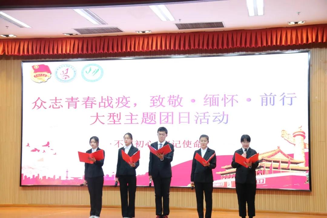 首先是英语2020-4班带来的朗诵《你的眼睛 你的面容》,他们的每一字每一句都铿锵有力,向奋不顾身的抗疫英雄们表达了最真挚的感谢。接着是由机械类2020-3班演绎的抗疫小品《最美逆行者》,他们用生动形象的表演展现了医护人员不畏生死、冲锋奋战在疫情防控第一线的勇气与担当,向疫情中的逆行者们致以崇高的敬意。