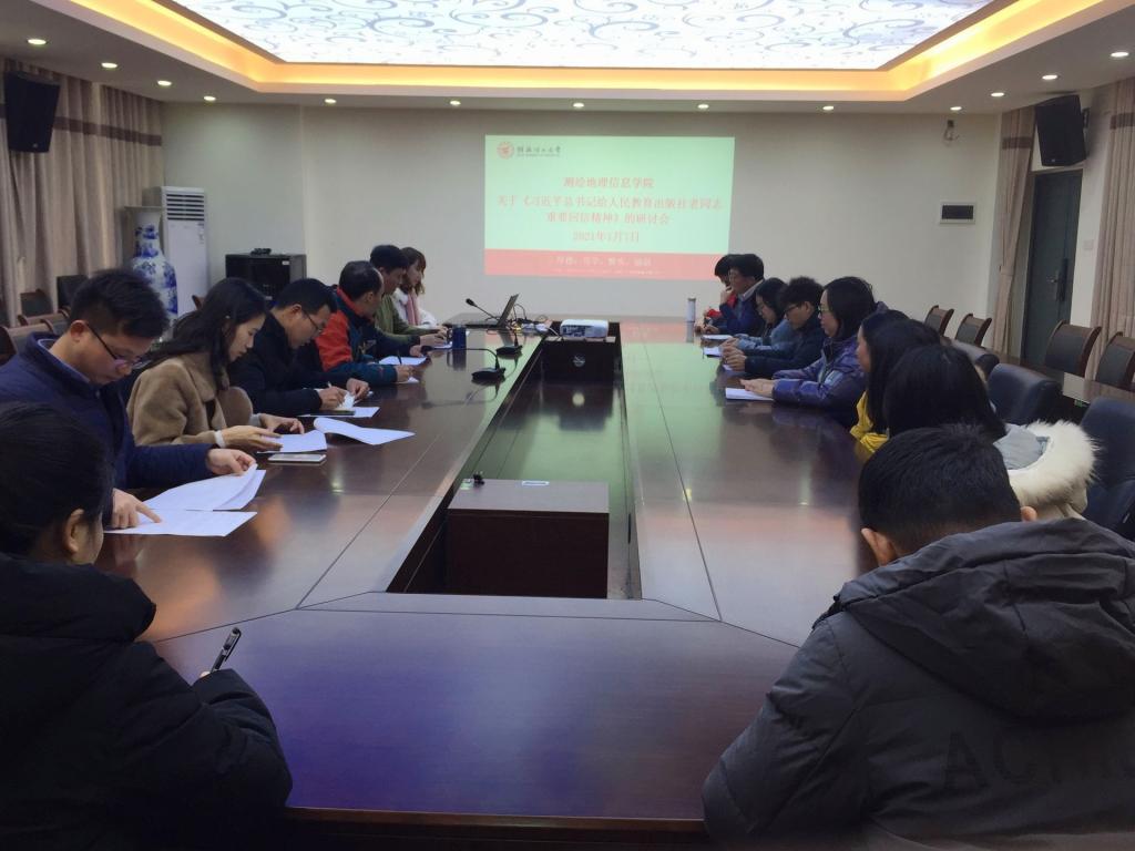 为了深入学习贯彻习近平总书记给人民教育出版社老同志重要回信精神,传达学校关于学习习近平总书记给人民教育出版社老同志重要回信的精神实质和重要意义,1月7日上午,测绘地理信息学院在雁山02226会议室召开了专题学习会。会议由测绘地理信息学院副院长王式太主持,全体教师参加了会议。