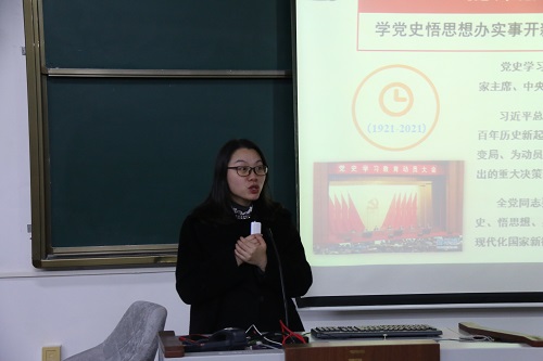 刘颖洁老师说明了党史学习教育的重要性,是建党100周年一件非常重要的事,也是同学们要做的一件事。2月20日召开了党史学习教育动员大会,习近平总书记在会议上发表讲话,讲话强调:开展党史学习教育,是党中央立足党的百年历史新起点、统筹中华民族伟大复兴战略全局和世界百年未有之大变局、为动员全党全国满怀信心投身全面建成社会主义现代化强国而做出的重大决策,对当代大学生而言,也是意义深远的。