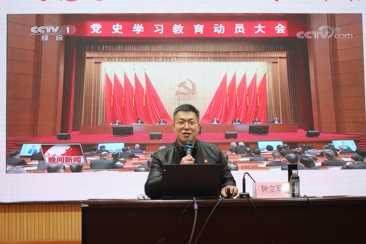首先,钟立军老师播放了党史学习教育动员大会的新闻报道视频,让同学们了解到党史学习教育中要做到学史明理、学史增信、学史崇德、学史力行。随后,他围绕开展党史学习教育的重大意义、重点内容和工作要求三方面和同学们一起学习了习近平总书记的重要讲话精神。钟老师解读了党史学习教育中的三个必然要求和六个重点内容,在党史学习教育的工作要求方面,他指出:“要将这些工作要求落到实处,作为学生骨干要起先锋模范带头作用,认真倾听同学意见,解决他们的问题就做到了切实为群众办事解难。”他还鼓励同学们积极主动收集党史的相关知识,了解历史上的今天,以多样的学习方式学习党史。活动最后播放了建党百年版《少年》MV,点燃了学生们的激情,钟老师寄语同学们:“了解历史,把握现在,开创未来。希望我们能共同携手为我们的未来、为中华民族伟大复兴一起努力奋斗!”