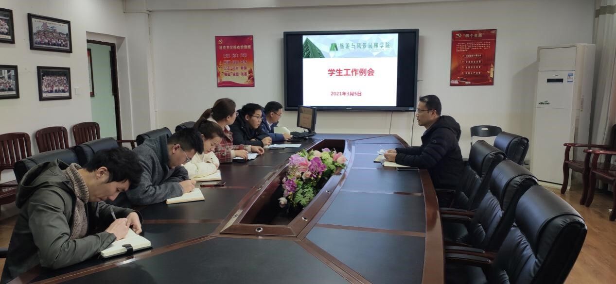为推进学生工作的开展和部署,3月5日下午,旅游与风景园林学院在雁山校区04509会议室召开2021年春季学期学生工作例会,会议由学院党委副书记罗义淞主持,旅院全体辅导员参加会议。