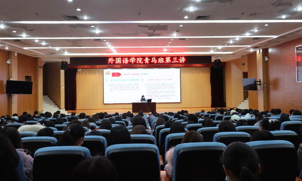 3月11日晚,外国语学院在我校雁山校区图书馆报告厅顺利举行“青马班”培训会第三讲:学习贯彻习近平总书记在党史学习教育动员大会上的重要讲话精神。本次会议由外国语学院团委兼职副书记梁璇担任主讲人,我院团委、学生会、党务中心、希望联盟、易班•新媒体中心、宿舍管理委员会全体学生骨干、2020级班长、团支书到场参加。
