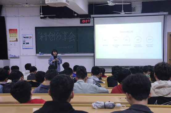 分享会中,三名同学以不同的侧重点进行了个人参赛经验的分享。黎思思同学就“项目申请”、“准备与实践”、“问题的产生和解决”、“项目答辩”这四个方面为同学们进行了细致的分享;陈德钦同学进行正式分享前,为观众重现了他们项目中期答辩的PPT演讲环节,让同学们初步了解大创的答辩模式,接着就如何完善项目申报书、如何快速查找相关资料这两方面进行分享;最后刘宇航同学为大家分享了自己三年来参加大创比赛的真实感受,同时鼓励同学们积极的参加大创比赛。