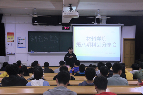 为了让更多的同学更好地了解大学生创新创业训练计划项目(以下简称大创)申报过程中的相关事项,从而鼓励学生参与到我校大学生创新创业训练计划当中,增强大学生的创新创业实践能力。材料科学与工程学院于3月27日晚在屏风校区9101教室举办了“第八期科创分享会:2021大创你必须知道的事儿”活动。本次活动邀请到了三名大创项目获得国家立项的同学进行分享,材料科学与工程学院团委副书记卢桂盛老师、200余名同学参加了分享会。