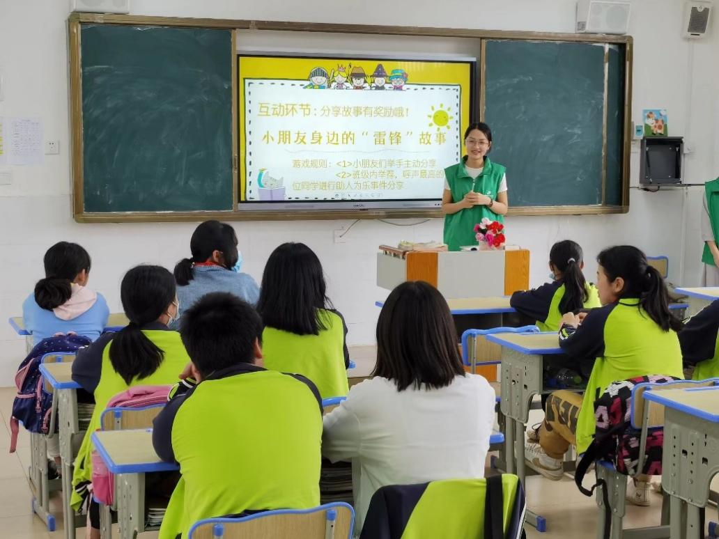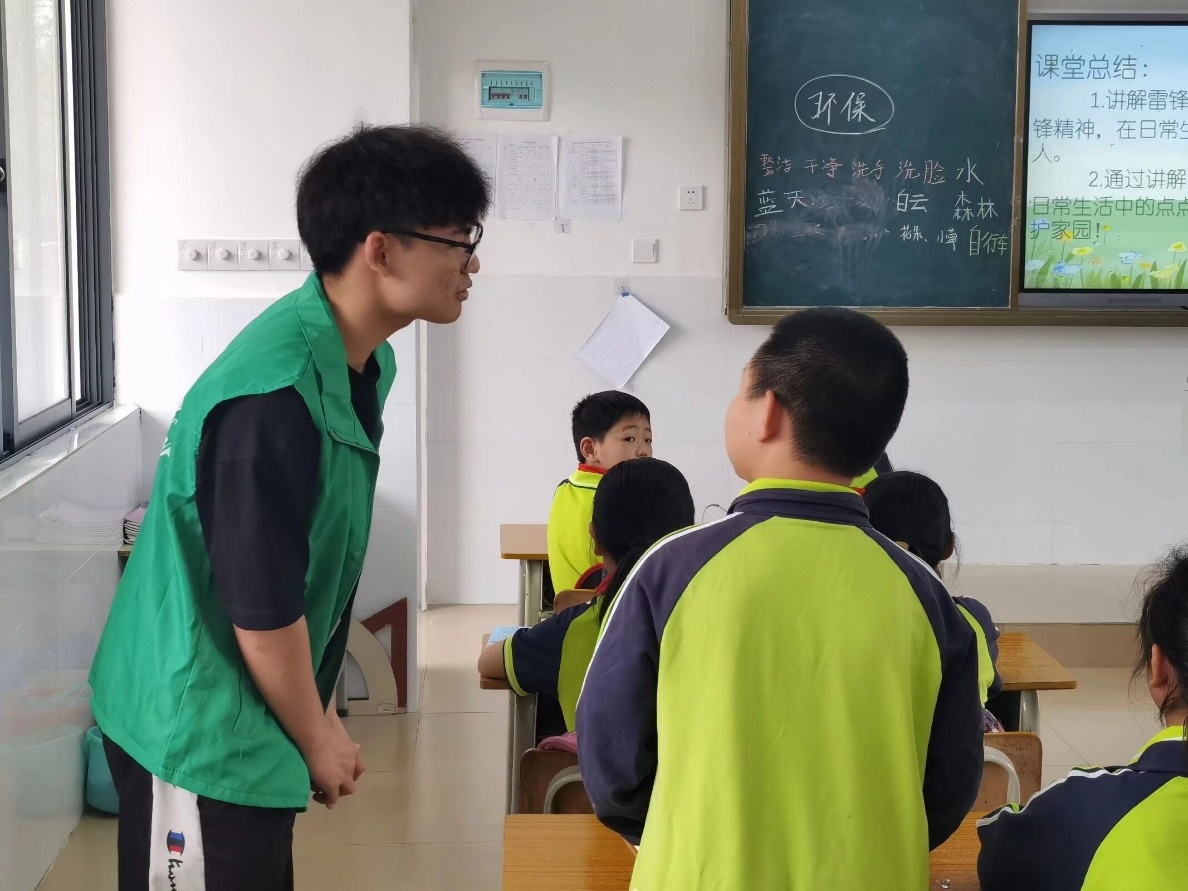 由环境科学与工程学院团委·学生会的八名志愿者组成的支教团于4月2日中午统一乘车前往北芬小学,下午开始授课,本次共有4班级参与活动,主要围绕传承雷锋奉献精神,践行环保理念的为主题,课堂上支教团的成员们为小学生们介绍了雷锋的英雄事迹和保护环境的相关知识。课堂上,同学们求知若渴,积极踊跃地回答问题。