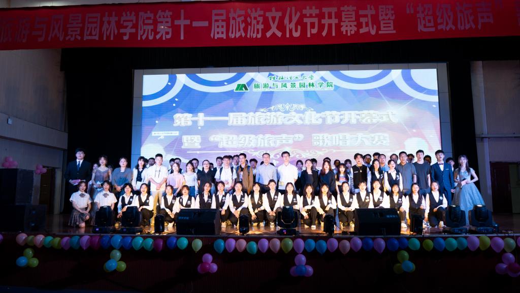 4月30日晚,旅游与风景园林学院第十一届旅游文化节开幕式暨“超级旅声”歌唱大赛晚会在雁山校区体育馆隆重举行。旅游与风景园林学院党委副书记罗义淞、团委副书记(主持工作)王成圆、团委副书记朱司甲、各年级辅导员和其他兄弟学院文艺部学生出席了本次活动。