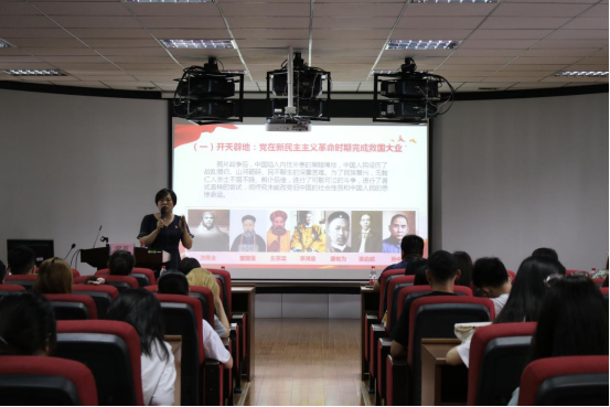 历史是最好的老师,历史也是最好的营养剂。会上,梁英老师以生动的讲述、鲜活的案例、极具思辨意识的理性思考回顾了中国共产党的百年奋斗史,从开天辟地:中国共产党在新民主主义革命时期完成救国大业;到改天换地:中国共产党在社会主义革命和建设时期完成兴国大业;到翻天覆地:中国共产党在改革开放和社会主义现代化建设新时期推进富国大业,再到惊天动地:中国共产党在中国特色社会主义新时代推进并将在本世纪中叶实现强国大业。从筚路蓝缕奠基立业到创造辉煌开辟未来,中国共产党团结带领中国人民取得了革命、建设、改革的伟大成就。深刻阐释了中国共产党为什么能,为与会师生党员带来了一场贯穿中国共产党100年来培育、继承与发展的伟大精神的党史学习教育盛宴。