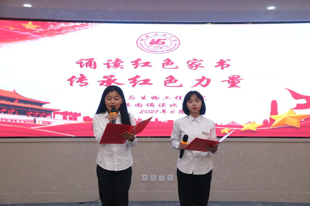 为深入推进党史学习教育,重温光辉历史,弘扬革命精神,传承红色基因,推动广大党员干部真正做到“学史明理、学史增信、学史崇德、学史力行”,6月17日晚上,化学与生物工程学院在雁山15栋15102举办“诵读红色家书,传承红色力量 ”校园诵读比赛,学院团委副书记王凯浩、各年级辅导员、班主任及学院学生会代表、学院青马班学员出席了活动。