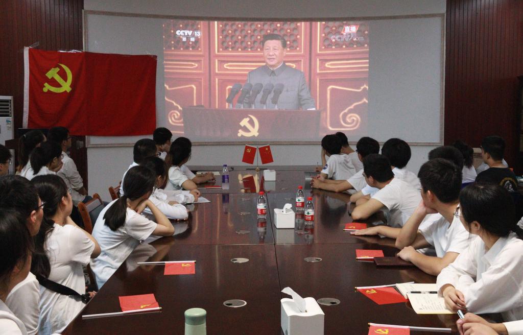 7月1日上午,庆祝中国共产党成立100周年大会在北京天安门广场隆重举行。中共中央总书记、国家主席、中央军委主席习近平出席大会并发表重要讲话。化学与生物工程学院70余名师生党员、团员、青马班学员代表在雁山萃华楼12217会议室集中收看了大会现场直播。