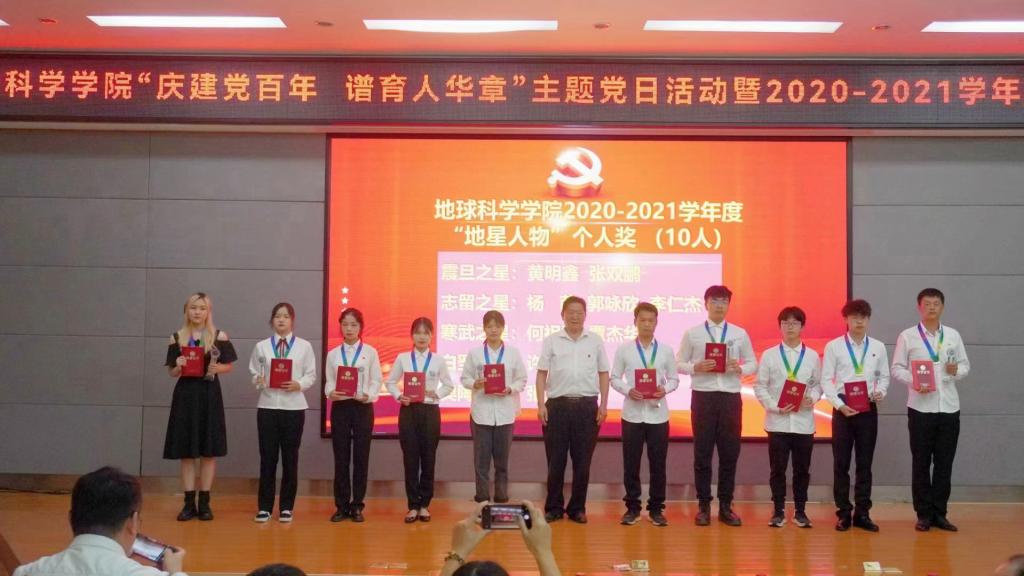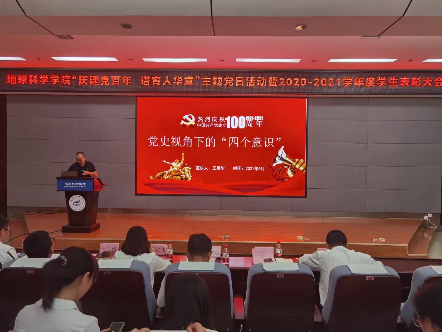为热烈庆祝建党100周年,6月30日下午,地学院于逸夫楼01501报告厅开展“庆建党百年,普育人华章”主题党日活动暨2020-2021学年度学生表彰大会。学院党政领导班子出席,全体师生党员、获奖学生代表和入党积极分子代表,共300余人参加活动。
