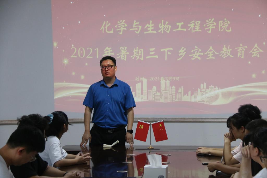 7月9日中午,化学与生物工程学院在雁山校区萃华楼12217会议室组织召开了大学生暑期“三下乡”社会实践活动安全主题教育大会,学院党委副书记李南、团队指导老师以及团队成员全部出席了本次会议。大会由学院团委书记张萌萌主持。