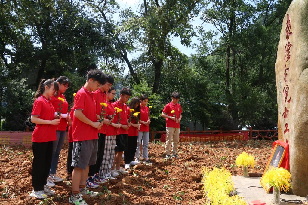 随后,实践团成员怀着无比崇敬的心情,于纪念碑前向袁隆平院士进行深切悼念,敬献了鲜花。指导老师张萌萌强调我们对袁隆平院士的最好纪念,就是学习他热爱党、热爱祖国、热爱人民,信念坚定、矢志不渝,勇于创新、朴实无华的高贵品质,学习他以祖国和人民需要为己任,以奉献祖国和人民为目标,一辈子躬耕田野,脚踏实地把科技论文写在祖国大地上的崇高风范。