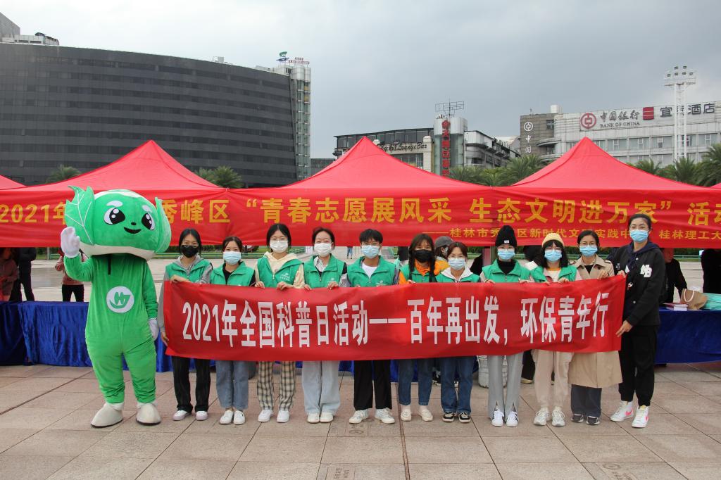 10月13日下午,环境科学与工程学院组织学生志愿服务队前往桂林市中心广场参加2021年桂林市秀峰区“青春志愿展风采,生态文明进万家”活动。