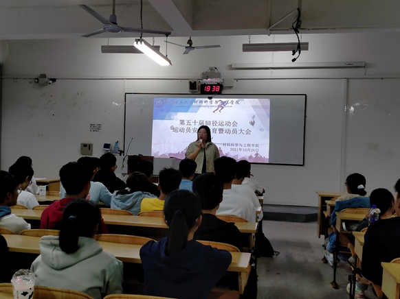 材料科学与工程学院于10月26日分别在雁山校区06103和屏风校区9115教室召开第五十届田径运动会运动员安全教育大会暨动员大会。学院团委书记赵思聪,团委副书记(兼)卢桂盛、2020级辅导员曲怀仁、2021级辅导员尹贤彬以及全体运动员出席本次会议,会议分别由学院学生会体育部工作人员覃泽凯和甘宇欣主持。