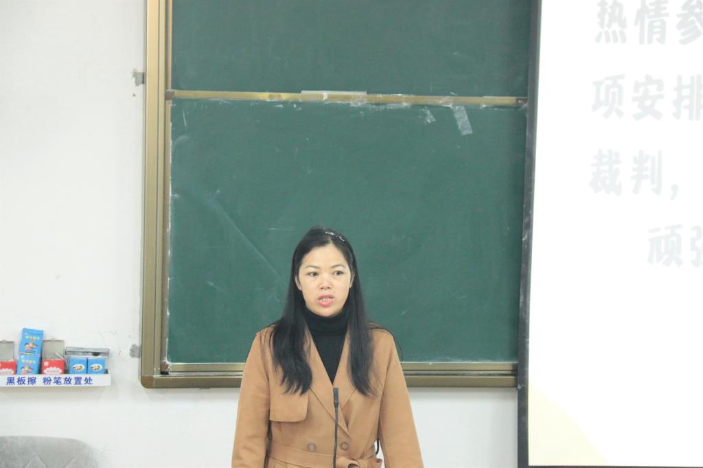 10月25日,外国语学院在我校雁山校区四栋教学楼04524室顺利召开第五十届校运动会动员大会。本次动员大会邀请了外国语学院党委副书记邓洁琼、团委副书记黎云鹏、团委兼副书记兼2018级辅导员梁璇、2019级辅导员姚倩作为嘉宾,外国语学院全体运动员积极到场参加。本次大会由学生会体育部负责人柳威雁主持。