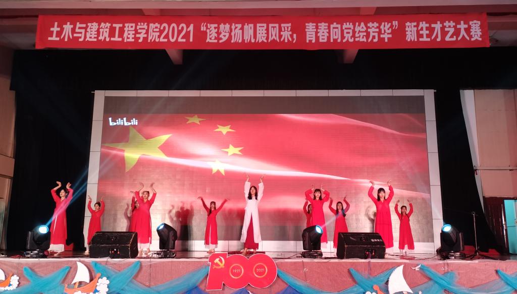 10月30日晚,土木与建筑工程学院于雁山校区体育训练馆举办“逐梦扬帆展风采,青春向党绘芳华”新生才艺大赛。本次大赛邀请到土木与建筑工程学院党委副书记唐丽华、学工组组长夏勇超、团委副书记安邦国以及各年级辅导员参加活动并担任此次大赛的评委,同时邀请到校艺术团代表与各学院学生会文艺部代表与2021级新生前来观看本次比赛。