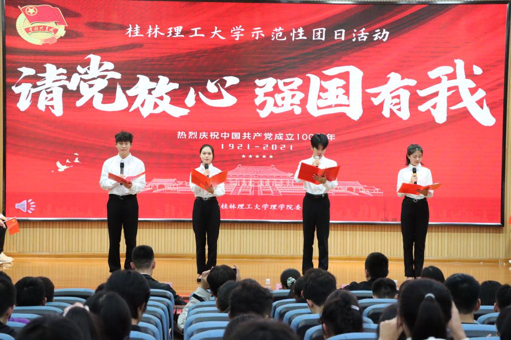 为认真学习贯彻习近平总书记“七一”重要讲话精神,引导青年团员们坚定理想信念、锤炼优良品德、矢志艰苦奋斗,努力践行“请党放心,强国有我”的庄严承诺。11月4日晚,理学院于雁山校区图书馆报告厅举办“请党放心,强国有我”——学习习近平总书记“七一”重要讲话精神主题团日活动。beats365亚洲版副书记莫媛老师,理学院团委副书记舒强老师,理学院学工组组长夏晴老师,以及2020级辅导员孙文强老师与林玉梅老师出席本次活动,参加活动的还有beats365亚洲版组织部部长、各学院团委组织部部长及大一各班班长、团支书。