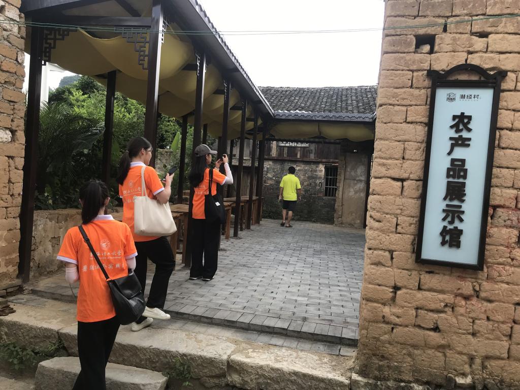 随后团队成员参观了潜经村的清真寺、文化广场、村史馆、农产品展示馆等,对潜经村的历史由来、民族文化以及建筑构成都有了一定了解。来调研之前,事先联系了潜经村的村支书,希望村支书能从百忙之中抽出时间接受采访,解答潜经村如何破解发展难题实现乡村振兴。中午十二点半,调研团队与郑支书就潜经村党建如何引领民族村寨振兴展开深入交流。郑支书热情地讲解潜经村以前发展存在的困难和现今乡村振兴建设工作。潜经村曾是自治区级贫困村,以前村寨发展面临着诸多难题,比如公共交通不够便利、缺乏良好的旅游配套设施、历史建筑长期空置且年久失修等。该村的主要经济来源为种植水稻、甜竹和蔬菜等,以农业收入为主。但潜经村一直有着丰富的旅游资源,周围分布着草坪和兴坪等名胜旅游资源,由于基础设施的缺失,这些景点以前并没有迎来大量的游客。