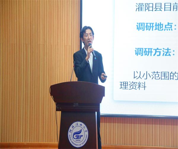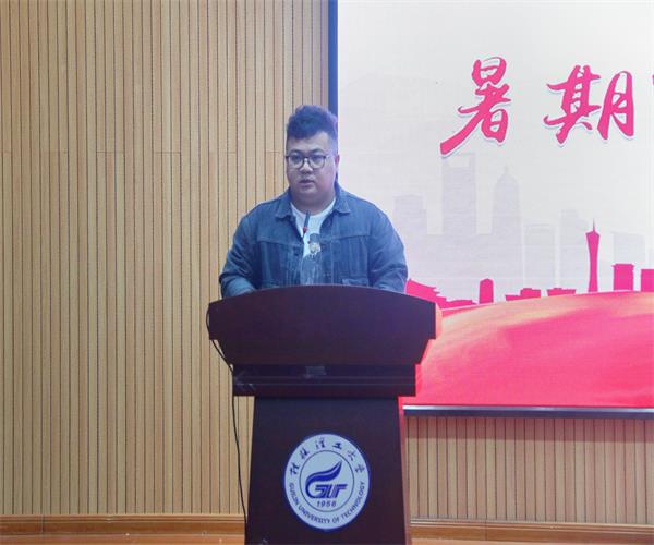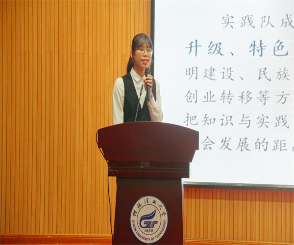 交流会伊始,王凯浩老师进行致辞,他说道大学生社会实践是一项内容丰富、寓意深刻的活动,是大学生思想政治教育工作的重要环节。同时也希望同学们积极投身到社会实践活动中去,服务他人,锻炼自我。接着由各团队代表进行分享交流,竞赛科研团代表黄孝鹏同学、稀土研究实践队代表梁永怡同学、“乡之行,薯之光”暑期实践团代表朱正鸿同学、"听说读写″党史暑期社会实践团代表伍婷同学、多彩八桂·壮乡文化调研实践队代表劳夏同学,分别为在座师生分享了关于医疗、稀土产业、农村发展、红色基因、壮乡文化的实践经历与感悟。最后由黎潮喜同学进行征兵宣讲并分享了他的部分兵役生活。