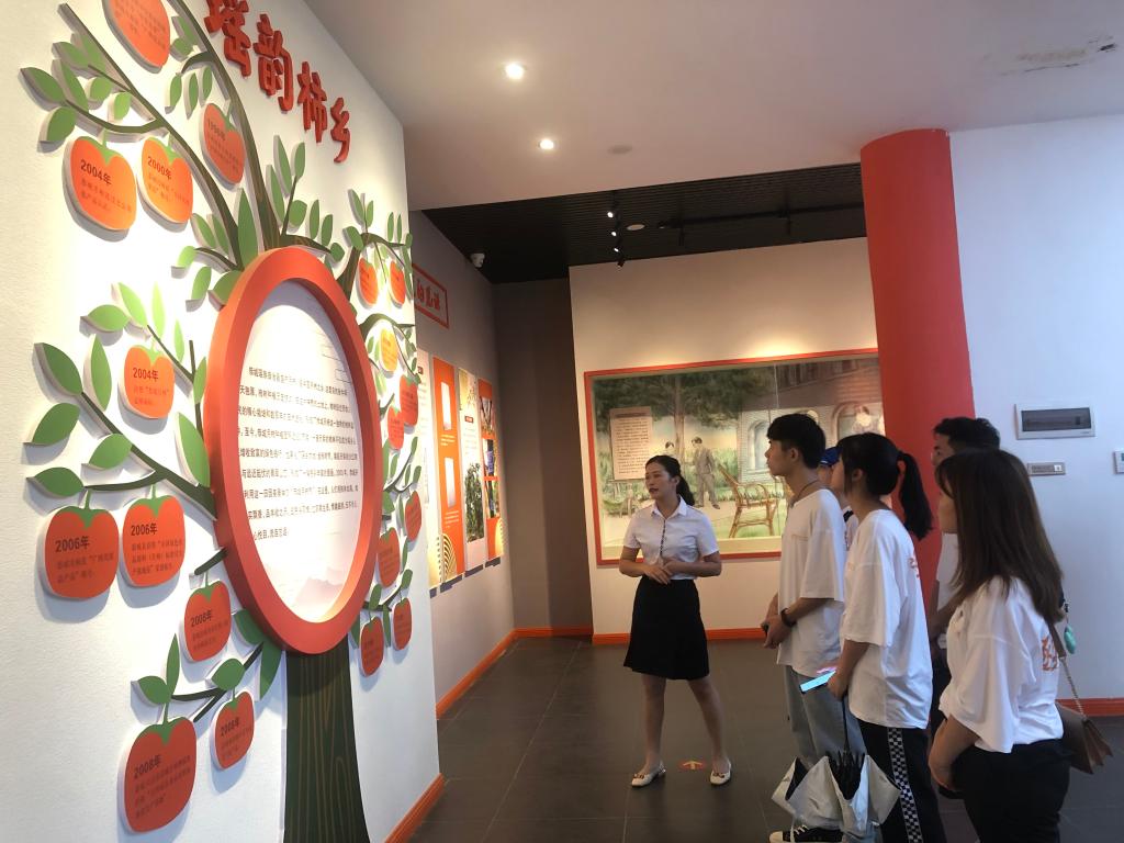 调研期间,实践团首先来到桂林市恭城县莲花镇的中国月柿博物馆,大家详细调研了解了在脱贫攻坚迈向乡村振兴新征程中,种植和发展月柿产业给当地百姓带来增收情况;接着,实践调研团来到了位于红岩村月柿品种育苗园基地,听取了基地负责人情况介绍,增进了对月柿育苗过程及其对农民的增收作用的了解,认为该基地的建立为扩大月柿种植面积提供了有力保证;最后,实践调研团应邀来到了红岩村村委会,红岩村党支部朱书记热情欢迎实践调研团师生的到来,并为大家介绍了十多年来,全村农民响应号召,大力发展月柿产业脱贫致富实现小康情况,同时介绍了当前红岩村乡村振兴工作推进情况。双方还就建立“大学生社会实践和志愿服务基地”事宜进行了友好交流。座谈会上,崔之府老师表示,学院将以此次调研实践活动为契机,积极组织大学生撰写调研报告,建言献策,今后,要继续发挥学院师生学科专业优势,在原有学院团队研制的“桂柿削皮机”投产应用服务当地多个村子农民增收的基础上,继续鼓励师生科技团队努力为当地乡村振兴作出新的更大的贡献。