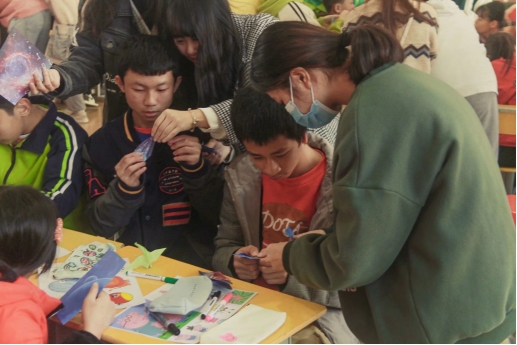 协会志愿者与孩子制作手工
