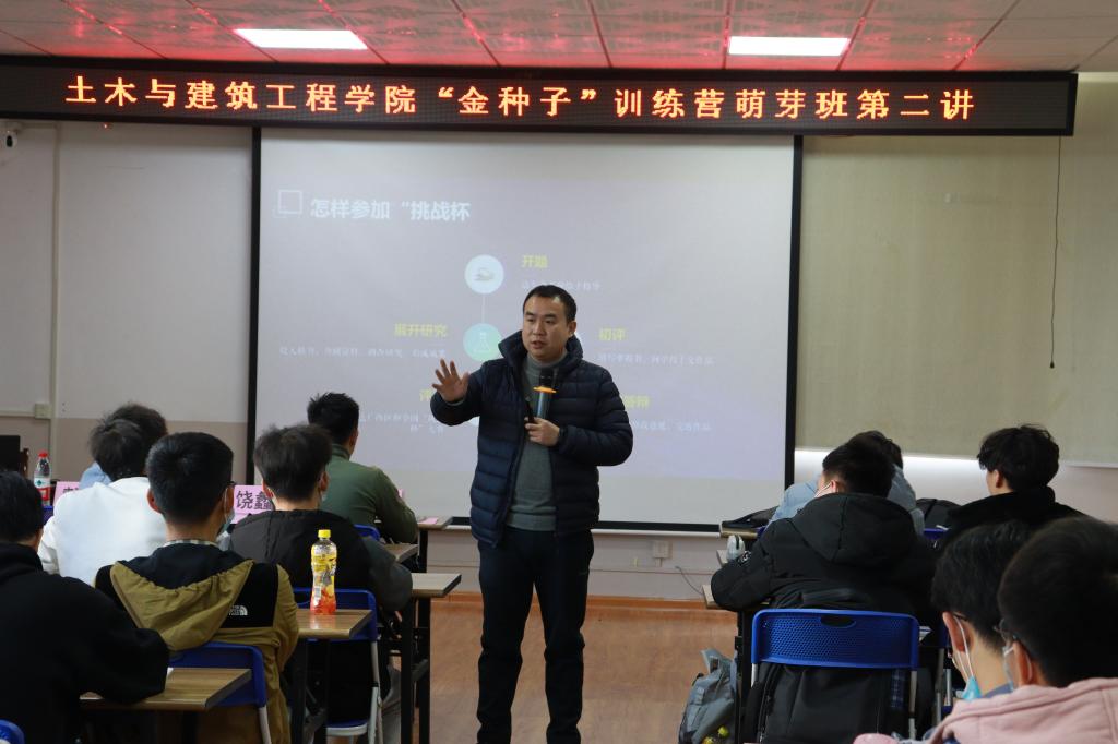 12月19日上午,土木与建筑工程学院第一期创新创业“金种子”训练营萌芽班第二讲于屏风校区4203会议室顺利开讲。本次课程由学beats365亚洲版副书记饶蠡老师进行授课,辅导员谢基柱老师主持。