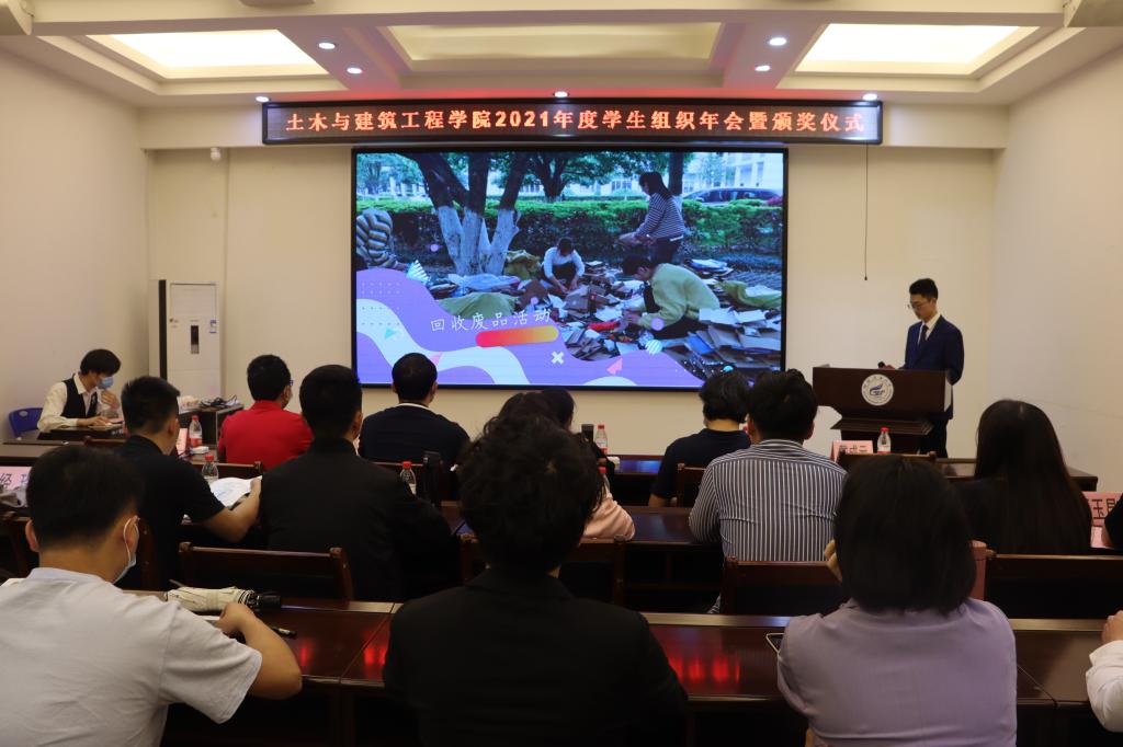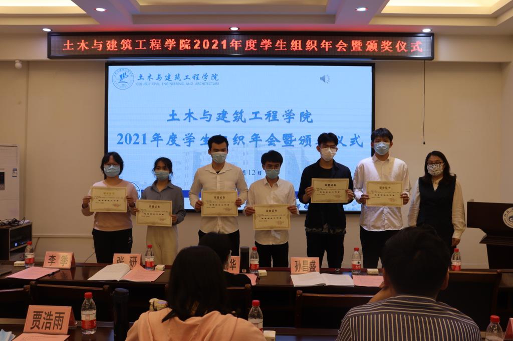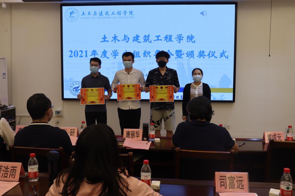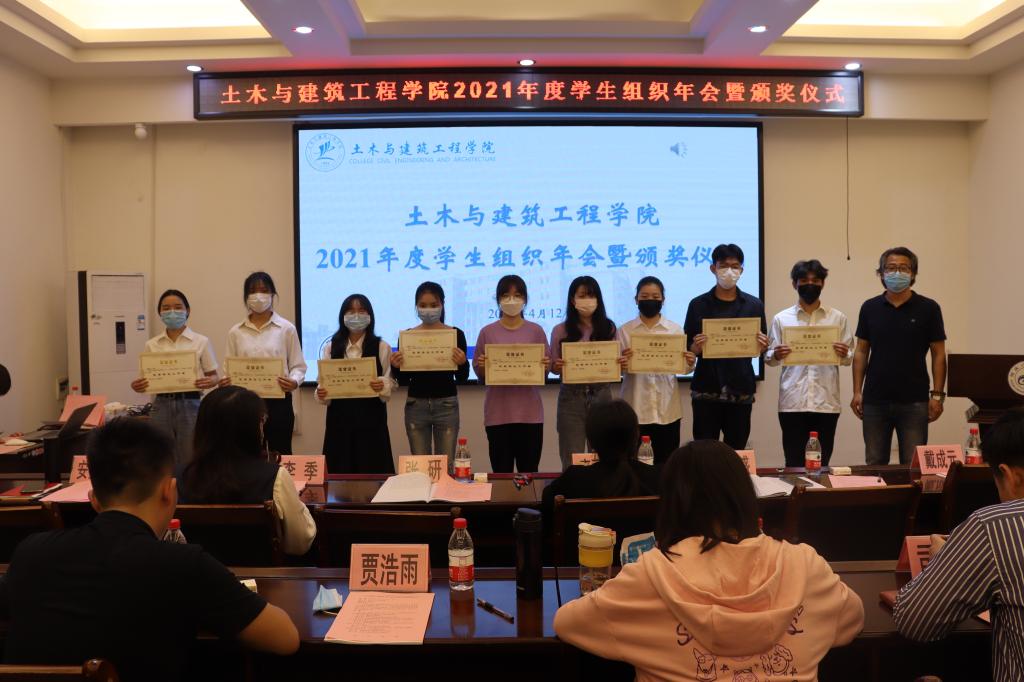 为加强学生组织的基层建设,提高学生组织在的影响力,规范学生组织良性发展,土木与建筑工程学院于4月12日在屏风校区4204会议室举行2021年学生组织年会暨颁奖仪式,学院党委副书记唐丽华、学院院长助理张研、各学生组织指导老师、全体学生辅导员以及各学生组织负责人参加线下活动,学院学生组织全体学生干部参加线上观摩。