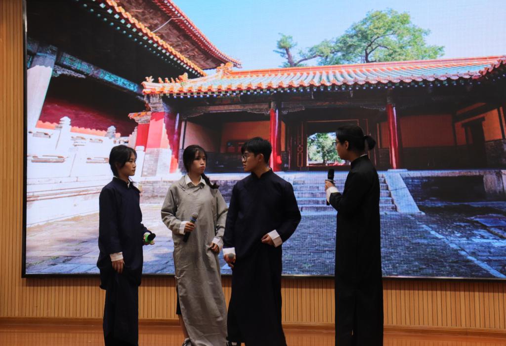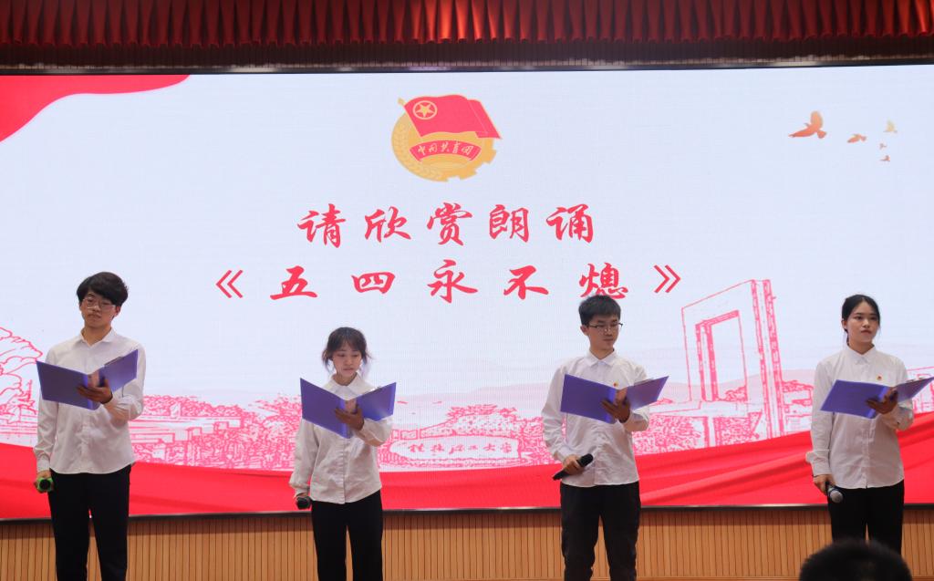 活动在嘹亮的《共青团之歌》中揭开序幕。诗朗诵《五四永不熄》带领同学们重温中国青年的精神与血气,其真挚、饱满的感情使在场观众深受感染;情景剧《开天辟地》展现了中国青年学子救国不忘读书,读书不忘救国的感人故事;合唱《中国》引发在场同学们的强烈共鸣,立志要做一名爱党爱国的有用之才。在党史知识问答互动环节,同学们踊跃参与,热情高涨,充分展现了学院青年学子的优良学风。最后,全体同学重温了庄重的入团誓词,坚定了同学们为党和国家努力奋斗的决心,激励同学们执着理想,为中华民族的发展贡献自己的力量。