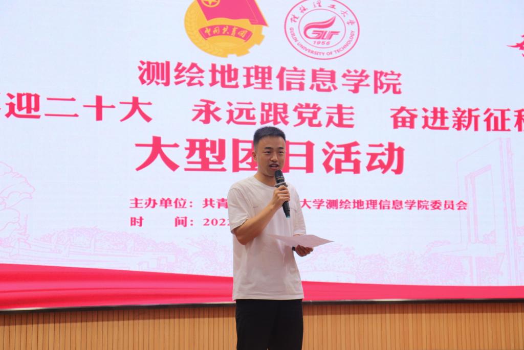 为深入落实习近平总书记关于青年工作的重要思想,以迎接党的二十大为主线,结合庆祝建团100周年,5月28日晚,测绘地理信息学院在雁山校区图书馆报告厅举办了“喜迎二十大,永远跟党走,奋进新征程”大型团日活动。学院2020级辅导员郭统军老师出席本次活动,参加活动的还有各学院团委组织部部长,测绘学院各年级团支书及团员代表。