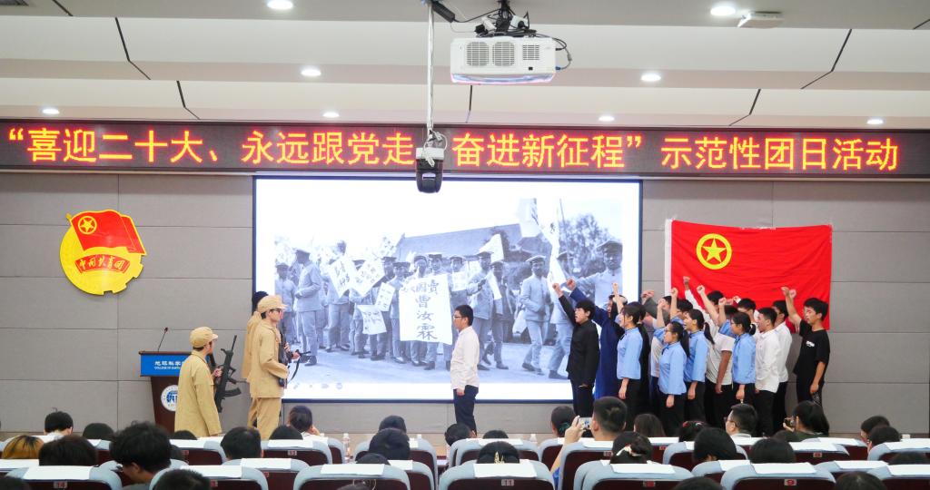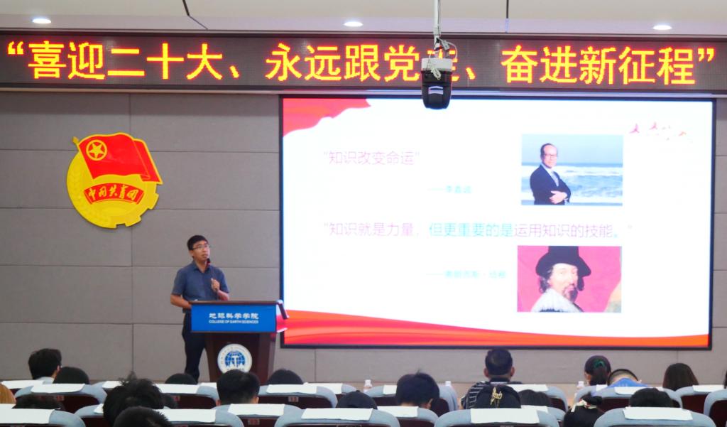 为迎接党的二十大胜利召开,学习贯彻习近平总书记在庆祝中国共产主义青年团成立100周年大会上的重要讲话精神,6月7日,地球科学学院团委在01501报告厅举办“喜迎二十大,永远跟党走,奋进新征程”示范性团日活动。学院党委书记曹文献、beats365亚洲版副书记莫媛、学院党委副书记陶剑飞、学院副院长吕玉增,学院团干部、辅导员出席本次活动,资源勘查工程2020实验班团支部、资源勘查工程2021实验班团支部、勘查技术与工程2021创新班团支部,各学院团委组织部负责人,地学院各年级团支书、团员代表参加此次活动。