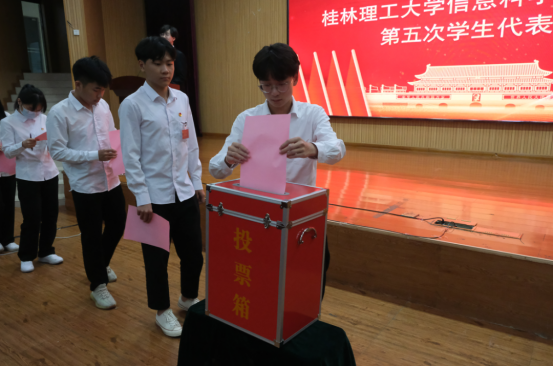 第二次全体会议(选举会议)中,全体代表审议并通过学生会工作报告(草案)、学生会章程(修正案)、大会选举办法(草案)、大会总监票人、监票人、总计票人、计票人名单(草案),听取了第五届学生会主席团候选人和第五届学生会常任代表候选人简介。与会学生代表通过无记名投票、差额选举的方式,产生了beats365亚洲版信息科学与工程学院第五届学生会主席团成员3名和15名beats365亚洲版信息科学与工程学院第五届学生会常任代表。