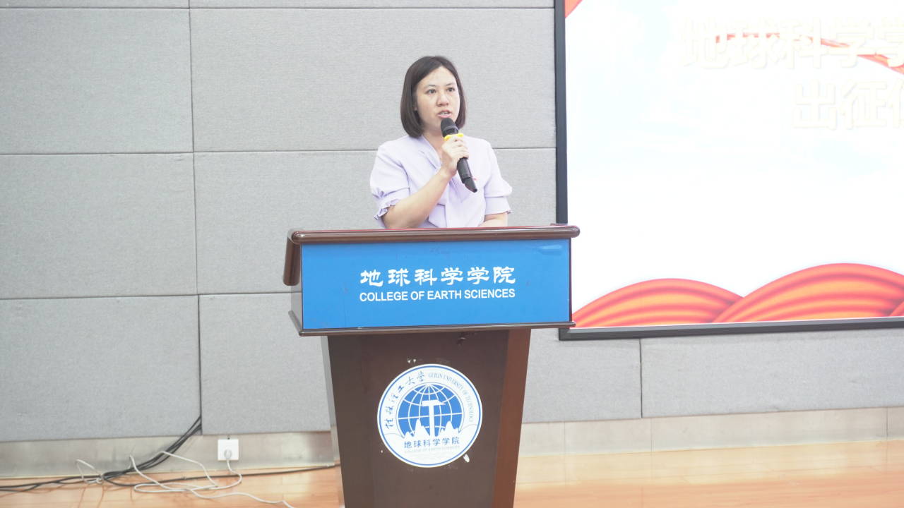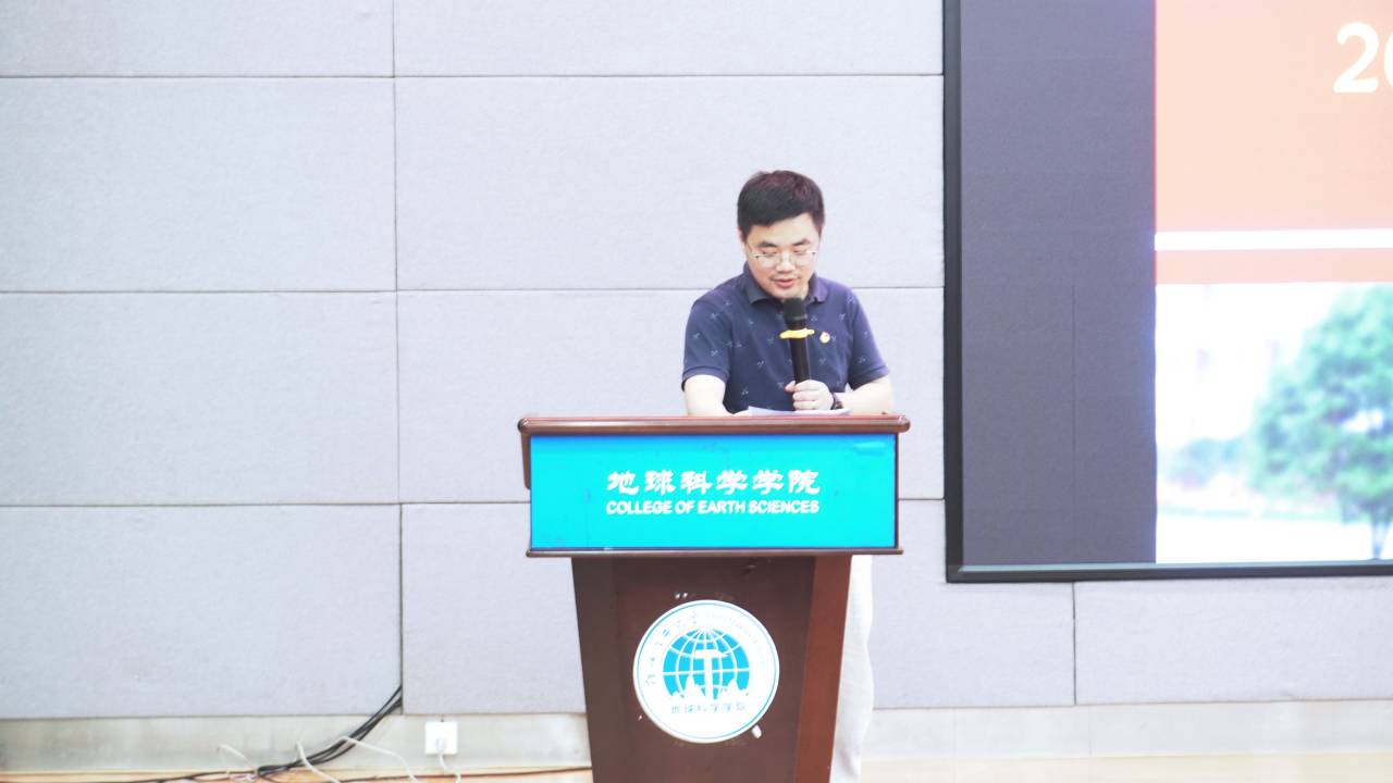 地球科学学院党委副书记陶剑飞上台致辞