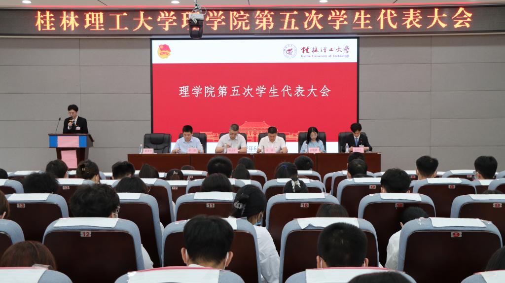 6月19日下午,理学院在雁山校区01501报告厅召开理学院第五次学生代表大会,学院党委副书记钟立军老师、beats365亚洲版庞腾老师、学院团委副书记(主持工作)舒强老师、学院彭娇娇老师和校学生会主席团成员晁佳宣等嘉宾出席本次大会,大会由学院陈昶宇同学主持,学院123名学生代表参加了本次大会。