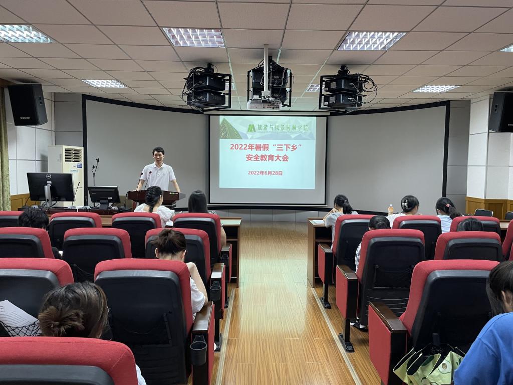 6月28日,旅游与风景园林学院在雁山校区04616会议室召开2022年“三下乡”安全教育大会。学院团委老师贾恒存老师以及8支“三下乡”暑期社会实践团队全体成员参与了本次会议。
