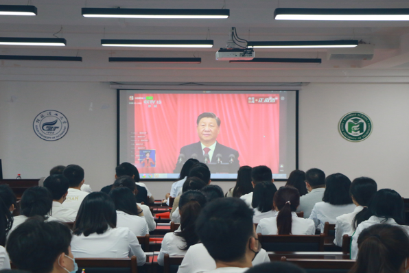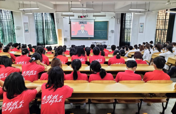 在学院组织的两校区四个集中收看会场里座无虚席,老师们、同学们怀着激动而喜悦的心情,聚精会神听报告,全神贯注做笔记。开幕会盛况也让现场的师生备受鼓舞,观看直播时不时爆发出热烈而持久的掌声。观看结束后,商学院教工第三党支部书记张倩表示:“习近平总书记在党的二十大报告中强调要实施科教兴国,强化现代化建设人才支撑。作为高校教师,我要时刻不忘初心、牢记使命,把好的教学经验、资源和方法引入到课堂教学中,为祖国实现高质量发展培养更多的优秀人才。”商学院人力2020-2班学生梁思萍激动地说:“习近平总书记在党的二十大报告中号召广大青年立志做有理想、敢担当、能吃苦、肯奋斗的新时代好青年。作为青年团学骨干,我倍感鼓舞,深刻感受到了党高度重视青年、关怀青年、信任青年。在实现中华民族伟大复兴的新征程中,我将坚定不移听党话、跟党走,怀抱梦想又脚踏实地,敢想敢为又善作善成,在全面建设社会主义现代化国家的火热实践中贡献青春与智慧。”