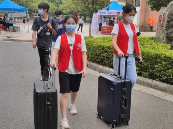 新生入校报到期间,我院迎新志愿者们统一身着红色马甲,佩戴口罩,手提肩扛,温和劝导,手举院牌,耐心引导,用周到热情的服务,温暖着对校园尚且陌生的新生们,一道道忙碌而坚定的身影奔波在校园的每个角落。