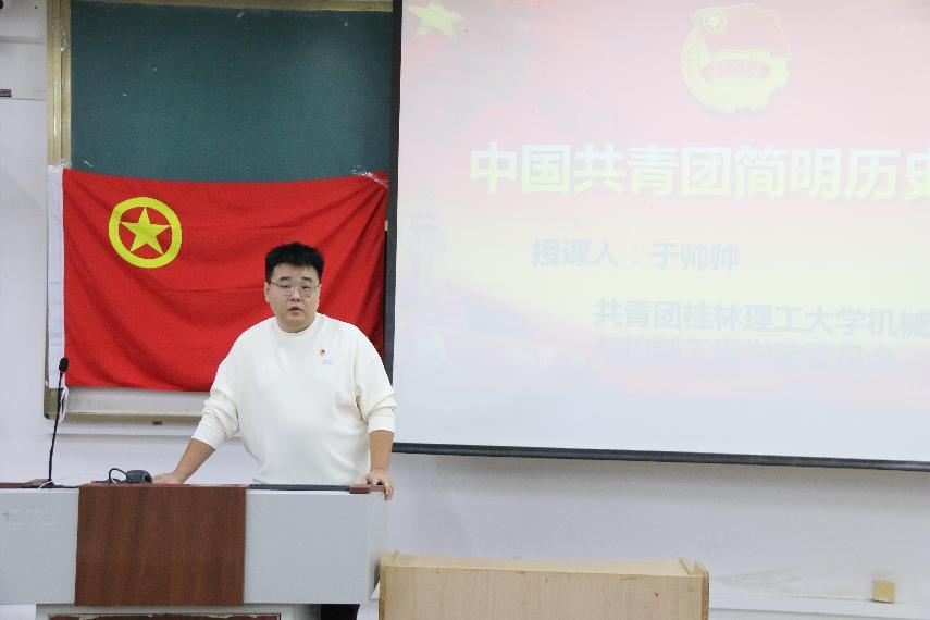 会上,于帅帅老师利用PPT给学生骨干们讲述了团的百年发展史,增强了同学们对中国共青团的认识。他指出,青年兴则国家兴,青年强则国家强,作为新时代中国共青团的一员,我们青年学生应当毫不动摇坚持党的领导,紧跟党走在时代前列、走在青年前列,认真履行引领凝聚青年、组织动员青年、联系服务青年的职责,在实现中华民族伟大复兴的中国梦的进程中不断开拓创新、奋发有为。同时,于帅帅老师希望学院的青年学子们要不忘初心、牢记使命,积极响应习近平总书记的号召,传承伟大建党建团精神,自觉融入血脉,志存高远、砥砺前行,坚定理想信念、增长知识本领,只争朝夕、刻苦学习,争做堪当民族复兴重任的时代新人,为实现中华民族伟大复兴的中国梦接续奋斗,书写出百年团史中闪光的青春篇章。