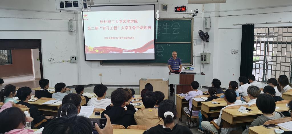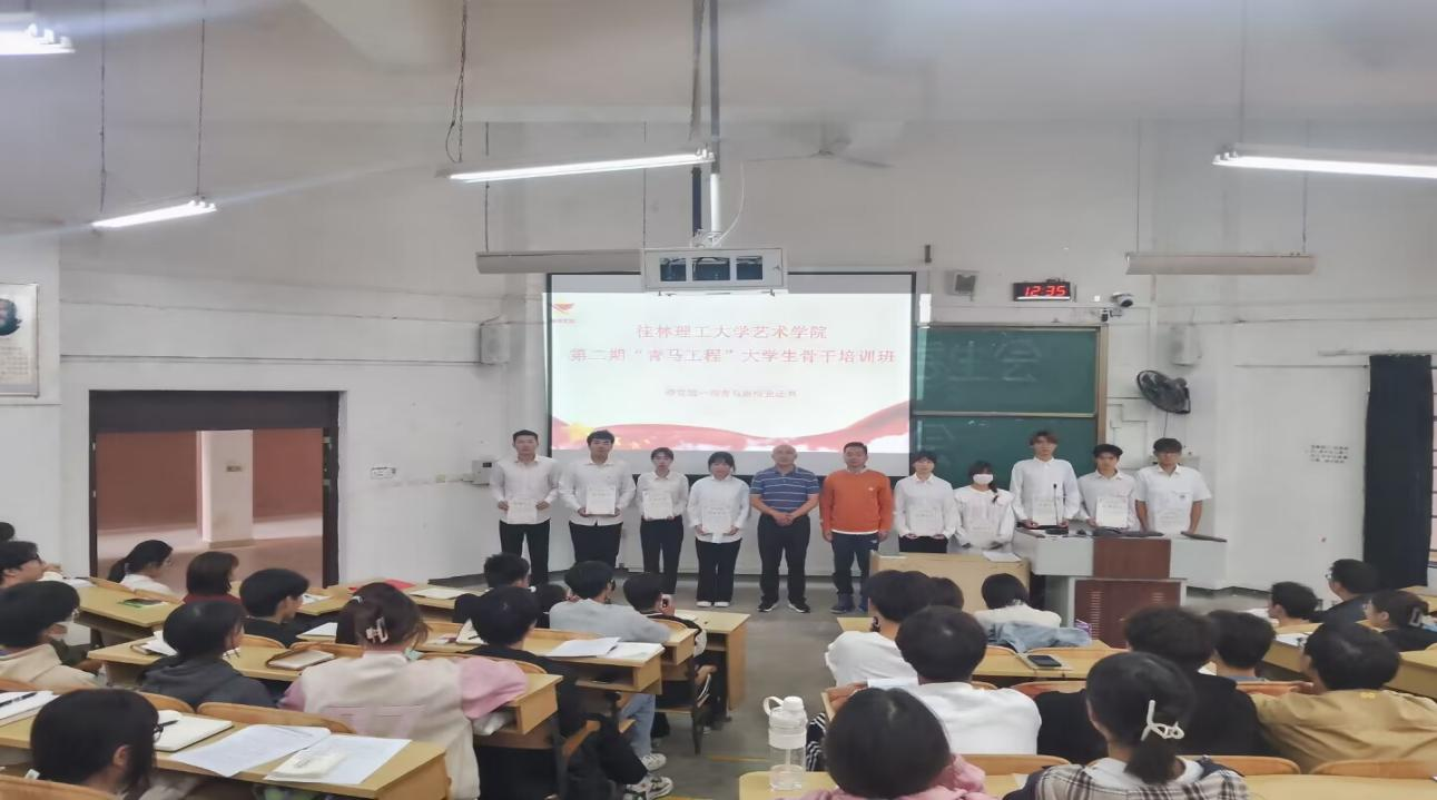 为深入学习宣传贯彻党的二十大精神,加强对青年大学生的思想政治引领,着力为党培养和输送坚定的青年政治骨干,充分展现青马学员充满理想、追求进步、昂扬向上的青春朝气。11月7日,艺术学院第一期青年马克思主义者培养工程大学生骨干培训班结业暨第二期青年马克思主义者培养工程大学生骨干培训班开班仪式在雁山校区05101召开。参加本次活动的有学院党委副书记苑守瑞、学院团委书记曹权玺以及第一期、第二期“青马班”学员。