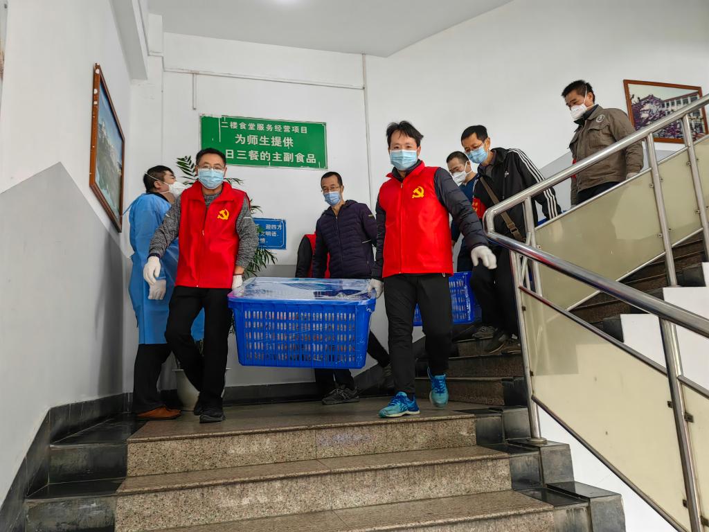 面对异常复杂严峻的疫情防控形势,学院师生迅速响应学校党委的号召,主动请缨、冲锋在前,值守雁山的学工队伍党员同志们积极承担雁山校区疫情防控相关工作,协助做好清点物资、采样引导等;屏风校区十余名教师志愿者们夜以继日地投身于疫情防控工作中,做好校园餐盒打包、运送等生活后勤保障服务工作,他们的身影穿梭于校园的每个角落,忙碌而坚定,为校园安全稳定工作筑牢坚实的屏障,把学校疫情防控各项工作落细落实。由“疫情防控党员先锋队”组成的护校执勤志愿服务队在各宿舍楼栋开展巡查和值守工作,及时提醒同学们学们保持一定距离,佩戴好口罩,积极引导身边同学正确理解和科学参与疫情防控,共同筑牢校园疫情最强防线。