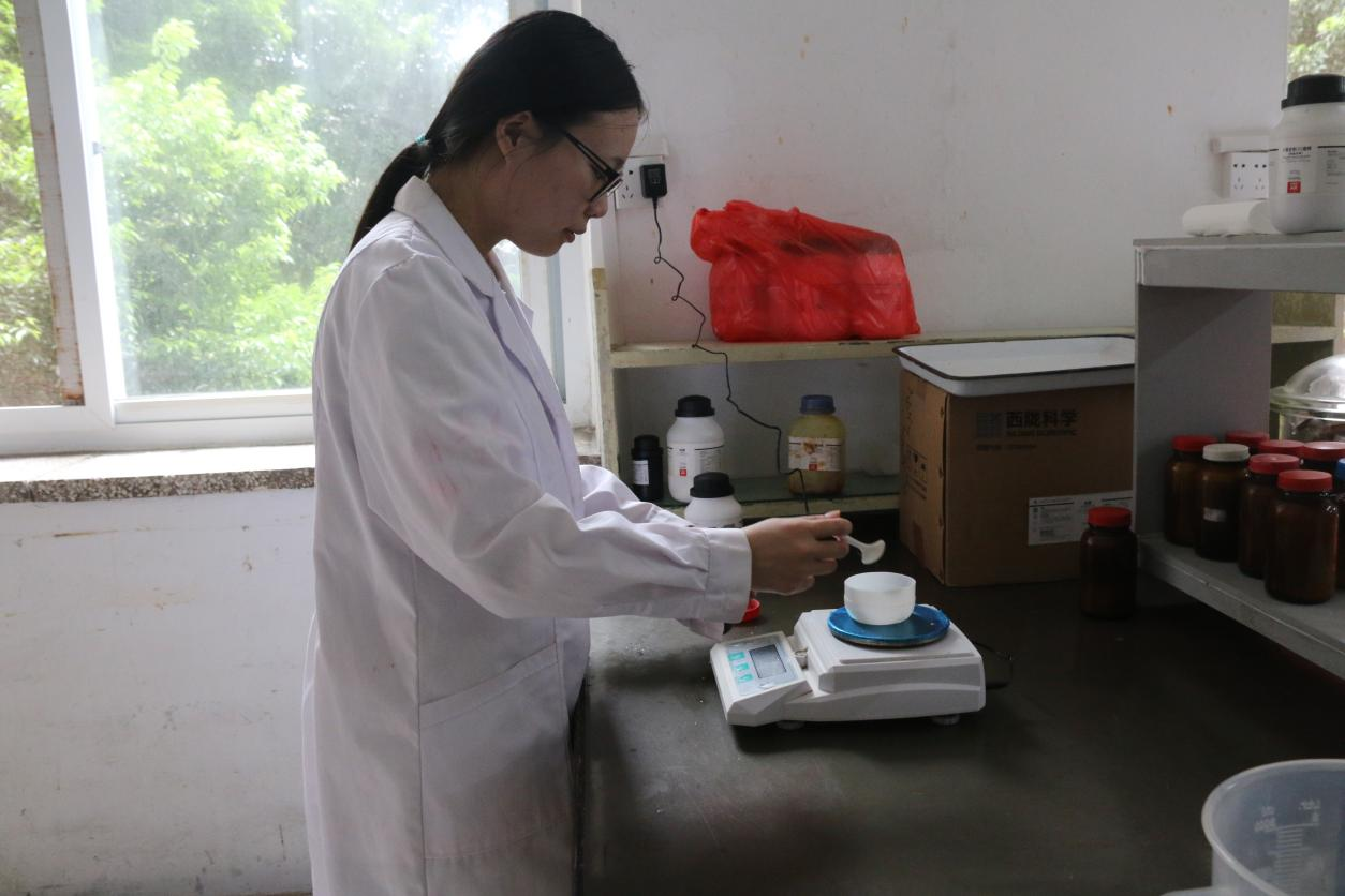实践团成员称取适量氢氧化钠配置原子荧光光谱仪还原剂
