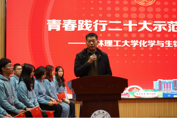 为持续学习宣传贯彻党的二十大精神,全面贯彻落实习近平总书记重要讲话精神,进一步激励青年学生以新姿态、新面貌投入到新学期。2月24日,化学与生物工程学院组织开展“青春践行二十大”示范主题团日活动,学院党委书记彭代江、党委副书记李少华及全体辅导员、班主任和学生代表共200多人参加了本次示范主题团日,活动由学院团委书记张萌萌主持。