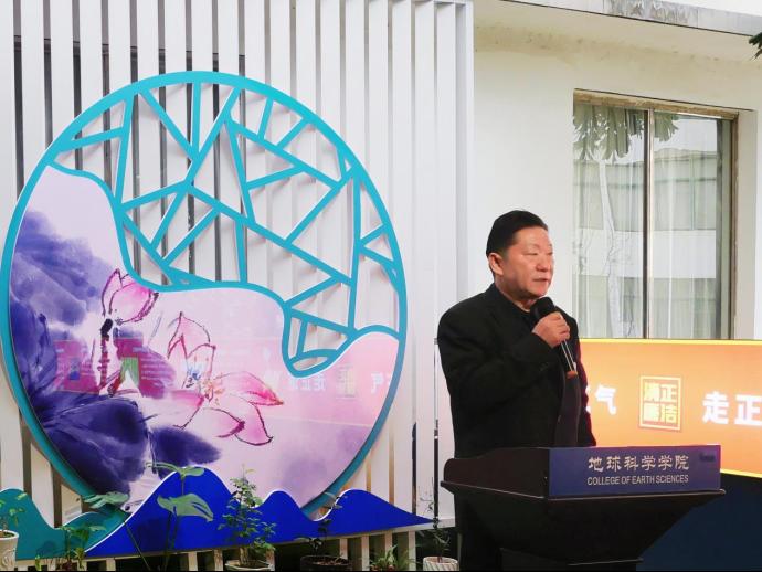 学校党委常委、纪委书记韦学敏对地球科学学院的清廉建设工作表示认可和赞许,对地球科学学院廉政文化长廊创造性、创新性、示范性的模式打造给予了高度评价,并在廉政文化长廊给在场师生上了一堂别开生面的“沉浸式”现场主题微党课。党课上,韦学敏以《领悟“两个答案”、捍卫“两个确立”、做到“两个维护”、紧跟伟大复兴领航人踔厉笃行,全面推进中华民族伟大复兴》为题,深入阐释了习近平总书记关于清廉文化建设的重要论述,重温了历史上毛泽东与黄炎培著名的“延安窑洞对”,讲述了如何跳出治乱兴衰的历史周期率。韦学敏指出,毛泽东同志在延安的窑洞里给出了第一个答案,这就是“只有让人民来监督政府,政府才不敢松懈”。经过党的百年奋斗历程,特别是党的十八大以来的全面从严治党的实践中,以习近平同志为核心的党中央给出了第二个答案,这就是自我革命,我们要在实践中正确领悟人民监督和自我革命之间的辩证关系,充分发挥两大答案的独特优势。“党的自我革命”是习近平总书记对中国共产党跳出历史周期率实践探索的最新概括,是习近平新时代中国特色社会主义思想中具有标识意义和原创性贡献的重大科学论断,具有重要的理论价值和实践意义。随后,地球科学学院党委书记曹文献宣读了2023年春季学期清廉学院建设活动方案要点以及全面纵深推进清廉学院建设“十个一”系列活动安排。