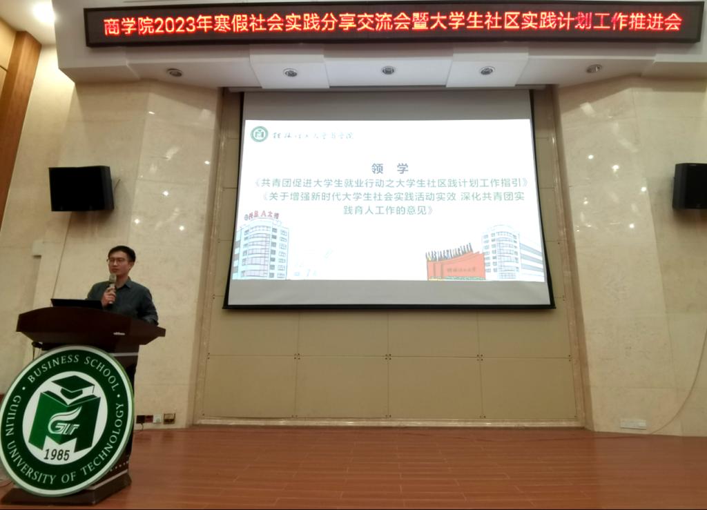 为深入贯彻落实党的二十大精神,切实提升大学生的社会实践能力,厚植家国情怀,增强大学生回报家乡、服务人民的责任感与使命感,4月18日晚,商学院于雁山校区萃华楼报告厅举行2023年寒假“返家乡”社会实践总结会暨大学生社区实践计划工作推进会。学院团委书记,2021级、2022级辅导员,2021级、2022级全体团支部成员参加此次会议。
