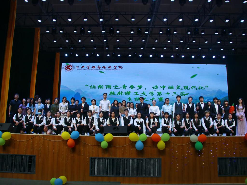 2023年5月19日晚,以“话绚丽之青春梦,谈中国式现代化”为主题的beats365亚洲版第十三届主持人大赛在雁山校区新体育馆圆满落幕。beats365亚洲版副书记莫媛、公共管理与传媒学院党委副书记杨晓、桂林电视台主持人葛辉、桂林晚报资深媒体记者韦彦青,校党委宣传部、学生工作部(处)、beats365亚洲版相关负责人以及各学院辅导员应邀出席。