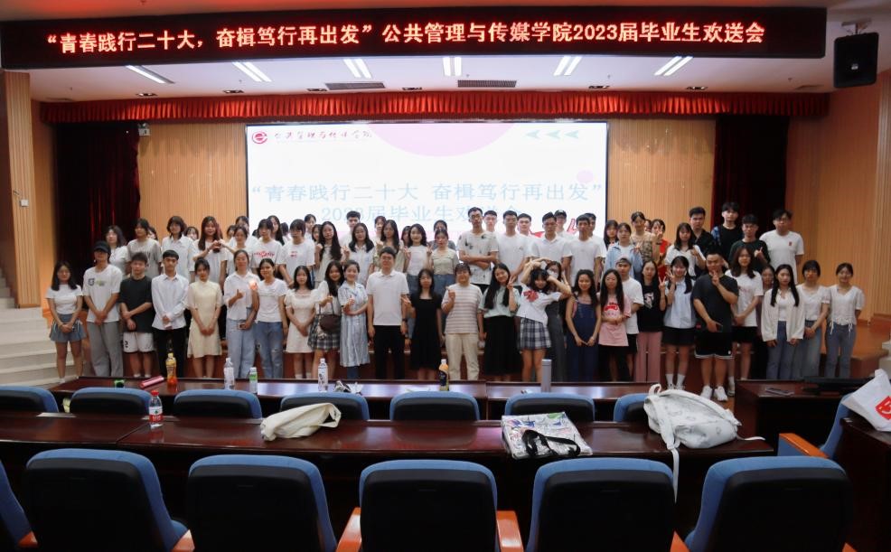 初夏的激情在为梦想释放力量,闪光的青春在狂热的季节散射光芒。2023年6月20日上午,公共管理与传媒学院“青春践行二十大,奋楫笃行再出发”2023届毕业生欢送会在雁山校区图书馆报告厅举行,学院党委书记陆平、院长彭正波、党委副书记杨晓、副院长何德珍、褚清华,各教研室主任、各年级辅导员和毕业班班主任共同出席此次欢送会。