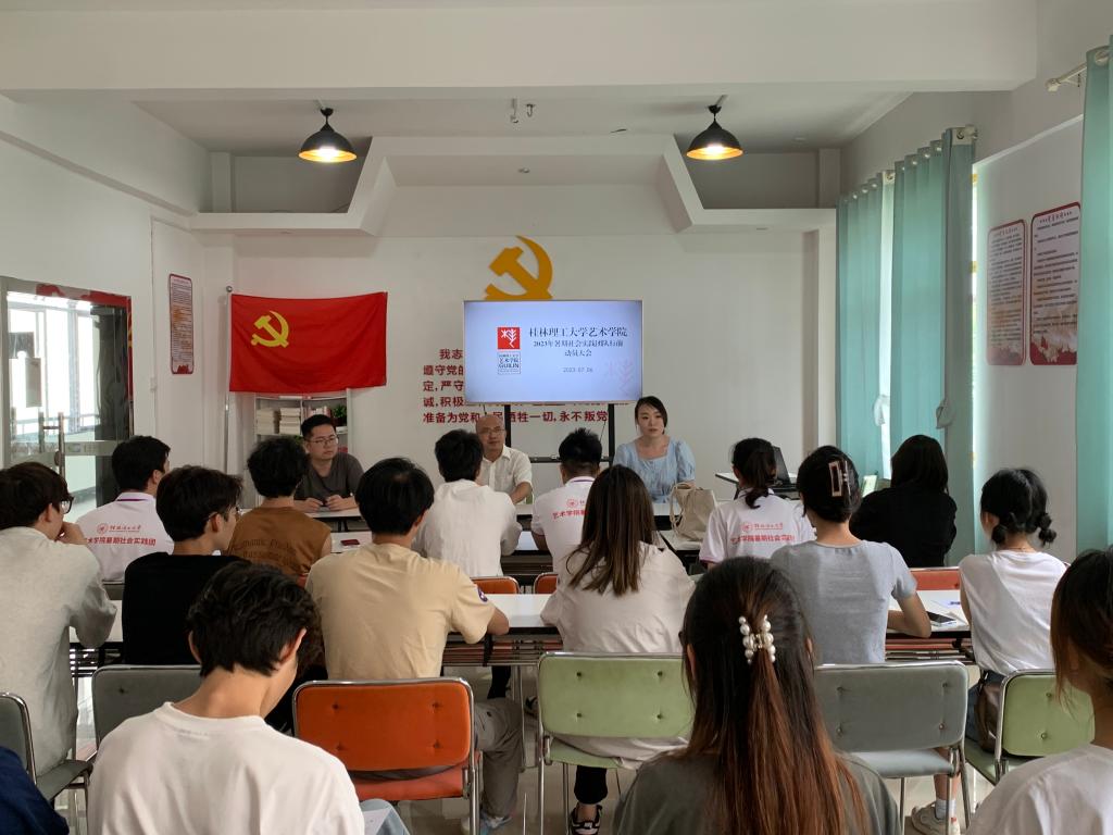 7月6日,艺术学院在博雅楼党员活动室召开2023年暑期社会实践团队安全教育会议暨行前动员大会。艺术学院党委副书记苑守瑞,社会实践团队指导老师徐嘉辉、欧阳慧婕以及“艺绘乡村·助力振兴”志愿服务团、“传统纹样·乡村振兴道路上的古今对话”社会实践团25名成员参加会议。